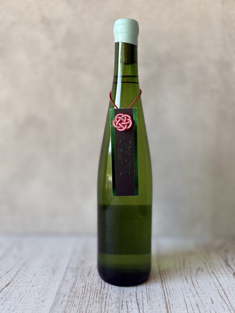 通常のMUSUBIと比べ、黒ブドウ比率が高く、樽を使用し熟成させています。白桃・蜜リンゴ・アーモンドの香り、穏やかな酸に黒ブドウからくるコクも加わり、エレガントで繊細な味わいとなっています。