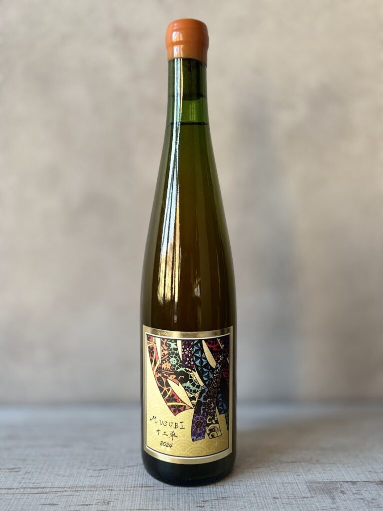 MUSUBI~十二単~はアロマティック品種等が加った12品種の混醸オレンジワインです。国内ではまだ珍しいコンクリートタンク醸しを行ったため、落ち着きの中にも華やかさがあり、十二種類のブドウが幾重にも重なりあった複雑な味わいとなっています。